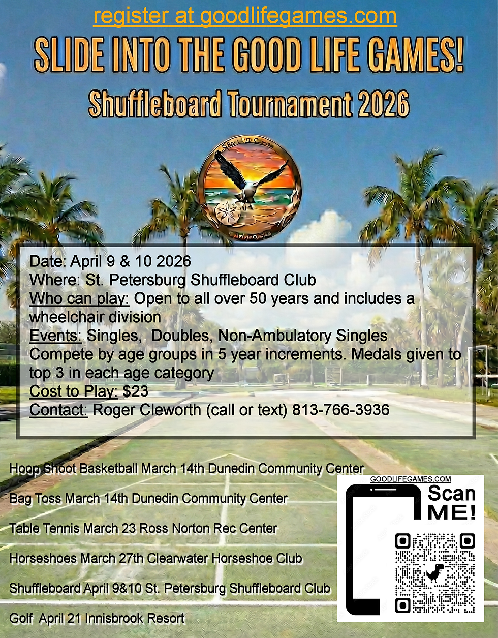 The spirit of competition is high this month! On April 9 and 10, the legendary St. Petersburg Shuffleboard Club will host the Good Life Games Shuffleboard Tournament. This is a perfect way to engage in "low-impact, high-strategy" exercise. Later in the month, on April 21, the action moves to the Innisbrook Resort for the Good Life Games Golf Tournament.